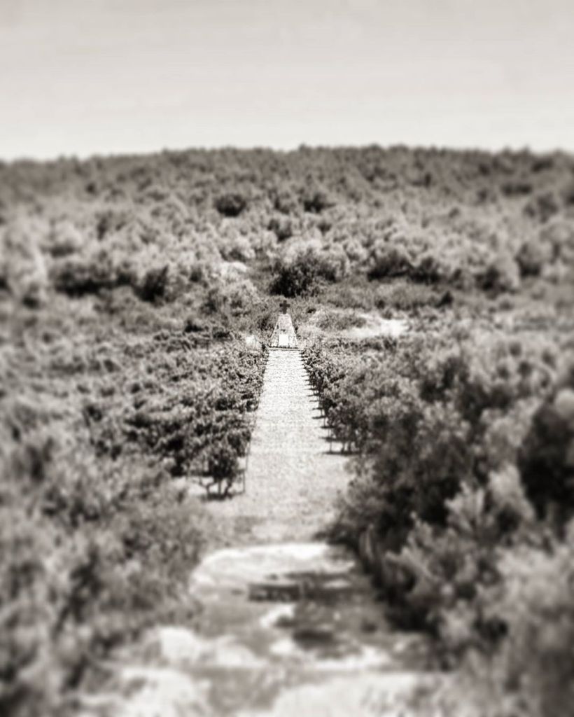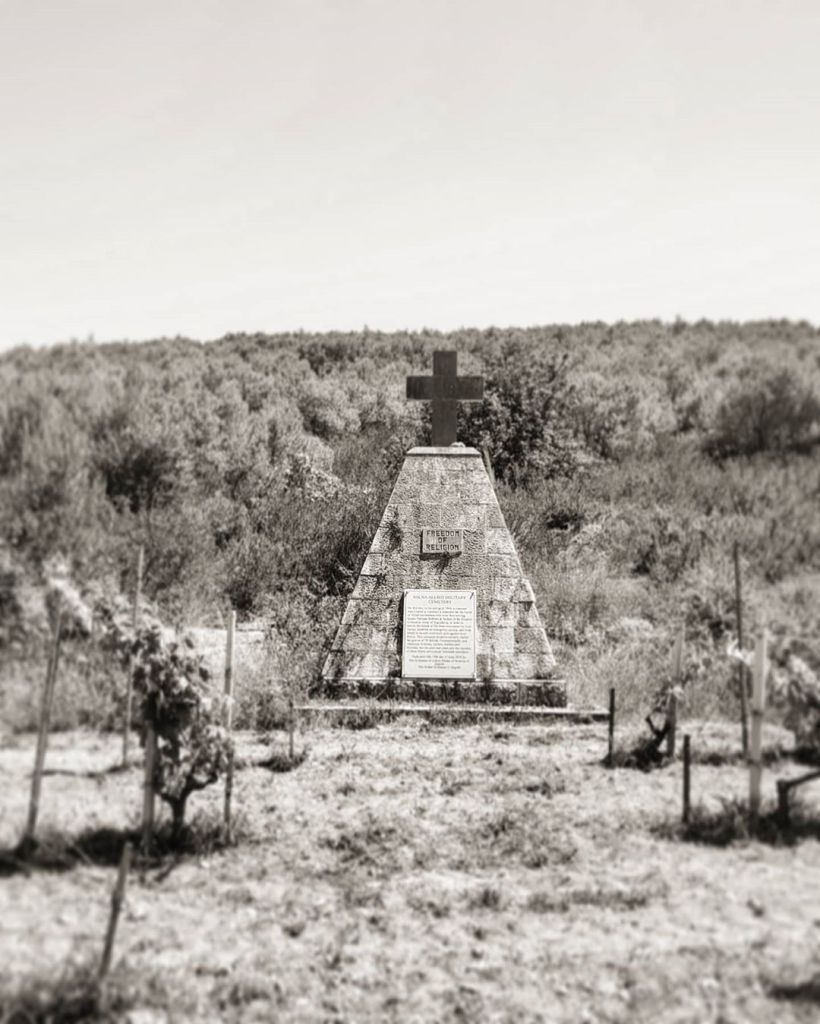 As you walk into the vineyard you’ll see the four sided stone pyramid. This monument is that is all that remains of the burial site.
